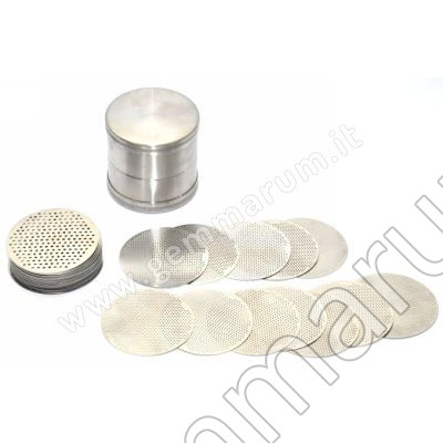 Forniti con numeri di piastre di setaccio e dimensioni in mm in un contenitore in acciaio inossidabile.