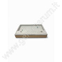 Il vassoio è dotato di porta anelli mobile, liberamente posizionabile su tutta la superficie interna, permettendo una disposizione personalizzata in base alle esigenze di esposizione. Questa caratteristica lo rende estremamente versatile e adatto sia alla presentazione singola che a composizioni più articolate.
